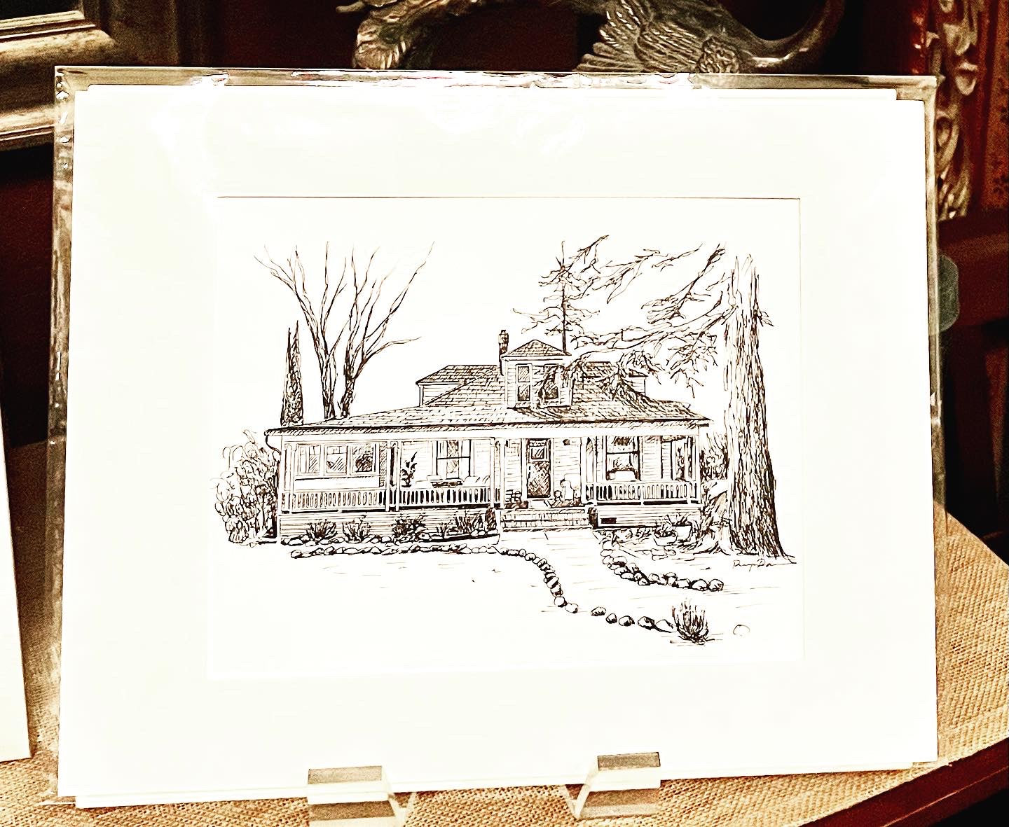 Working in her distinctive gestural style with ink and watercolor, digital, and mixed media, her aim is to discover and showcase all of the amazing architecture and small businesses that surround us. She has collaborated with wineries, non-profits, businesses, area magazines, homeowners, brides, event planners, and major organizations like the Ironman triathlon team to create hand-drawn portraits, collections of art, maps, postcards, and related merchandise.